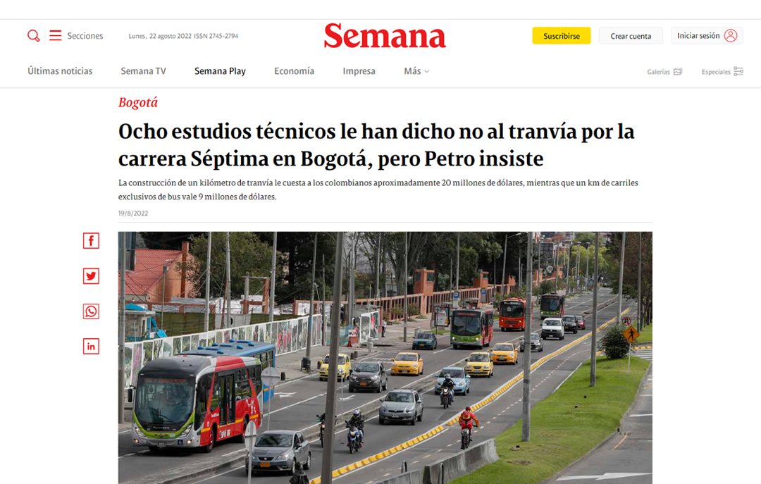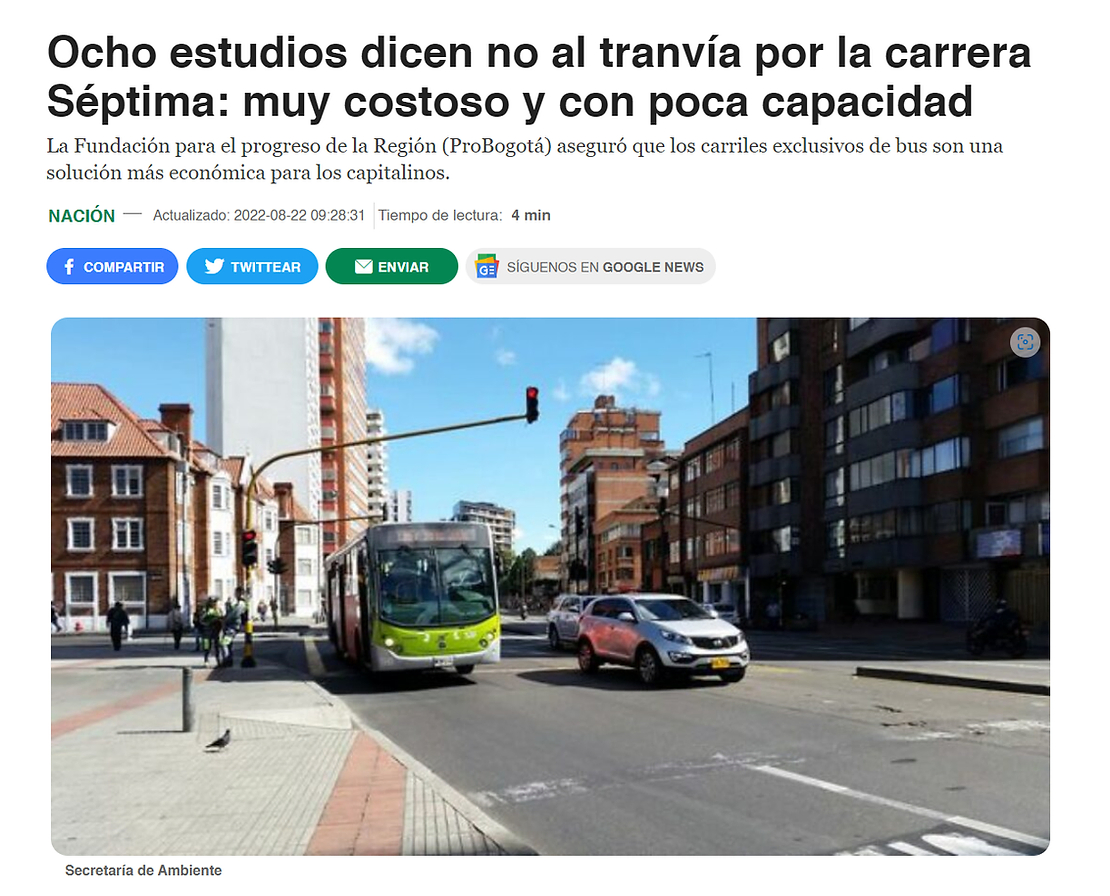 En lugar de un sistema de tranvía, se deberían desarrollar carriles exclusivos de bus(BRT) por su mayor capacidad de transportar pasajeros, su costo inferior y su sostenibilidad ambiental.