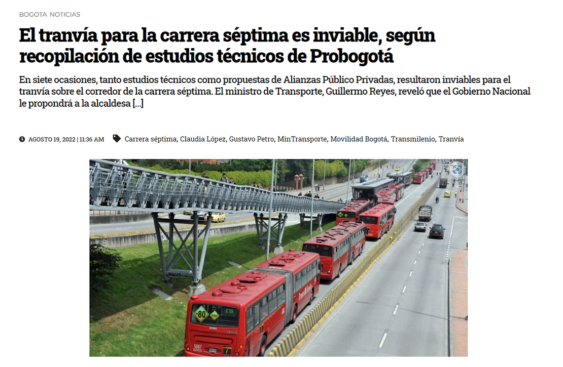 En siete ocasiones, tanto estudios técnicos como propuestas de Alianzas Público Privadas, resultaron inviables para el tranvía sobre el corredor de la carrera séptima.