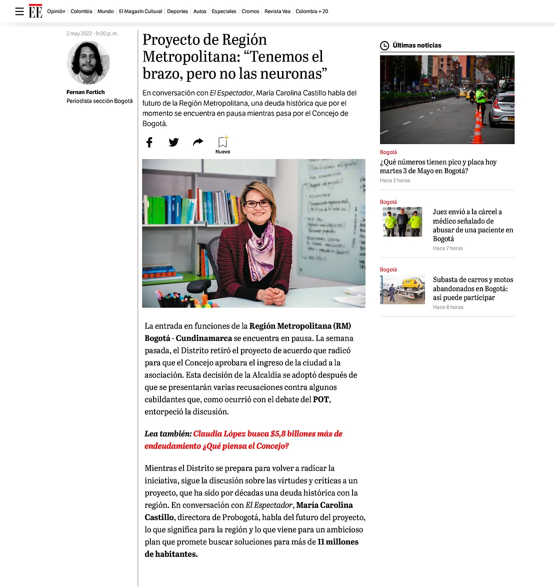 María Carolina Castillo habla del futuro de la Región Metropolitana, una deuda histórica que se encuentra en pausa mientras pasa por el Concejo de Bogotá.