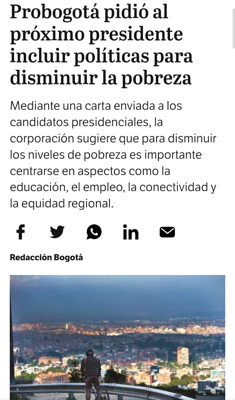 Semana resaltó que Probogotá, la RedPro y el Consejo Privado de la Competitividad enviaron un documento a los candidatos presidenciales, pidiéndoles una hoja de ruta clara para las poblaciones rurales y urbanas.