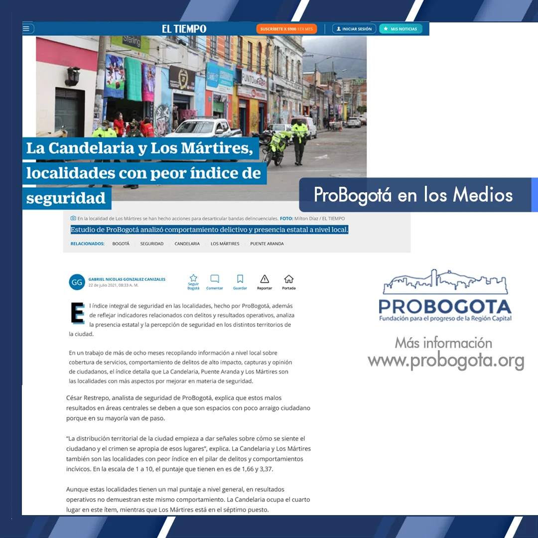 Estudio de ProBogotá analizó comportamiento delictivo y presencia estatal a nivel local.