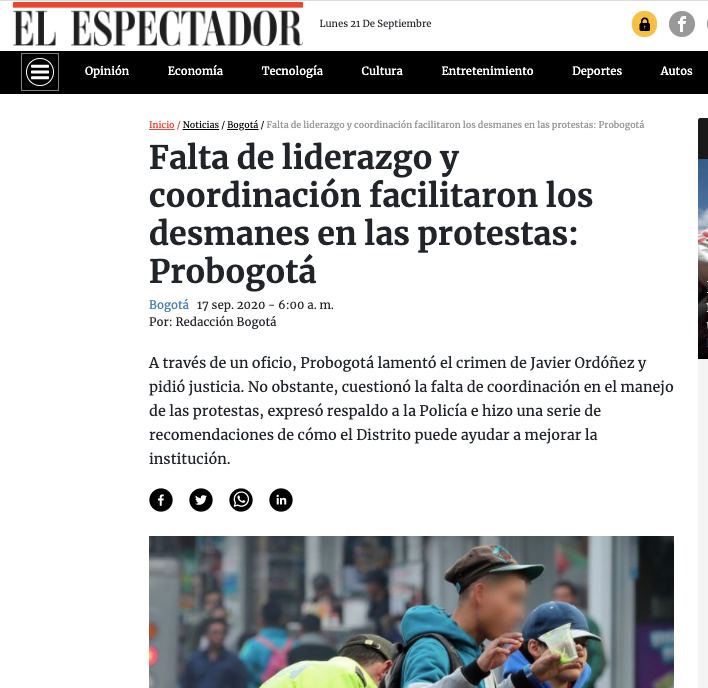 Probogotá lamentó el crimen de Javier Ordóñez y pidió justicia. No obstante, cuestionó la falta de coordinación en el manejo de las protestas.