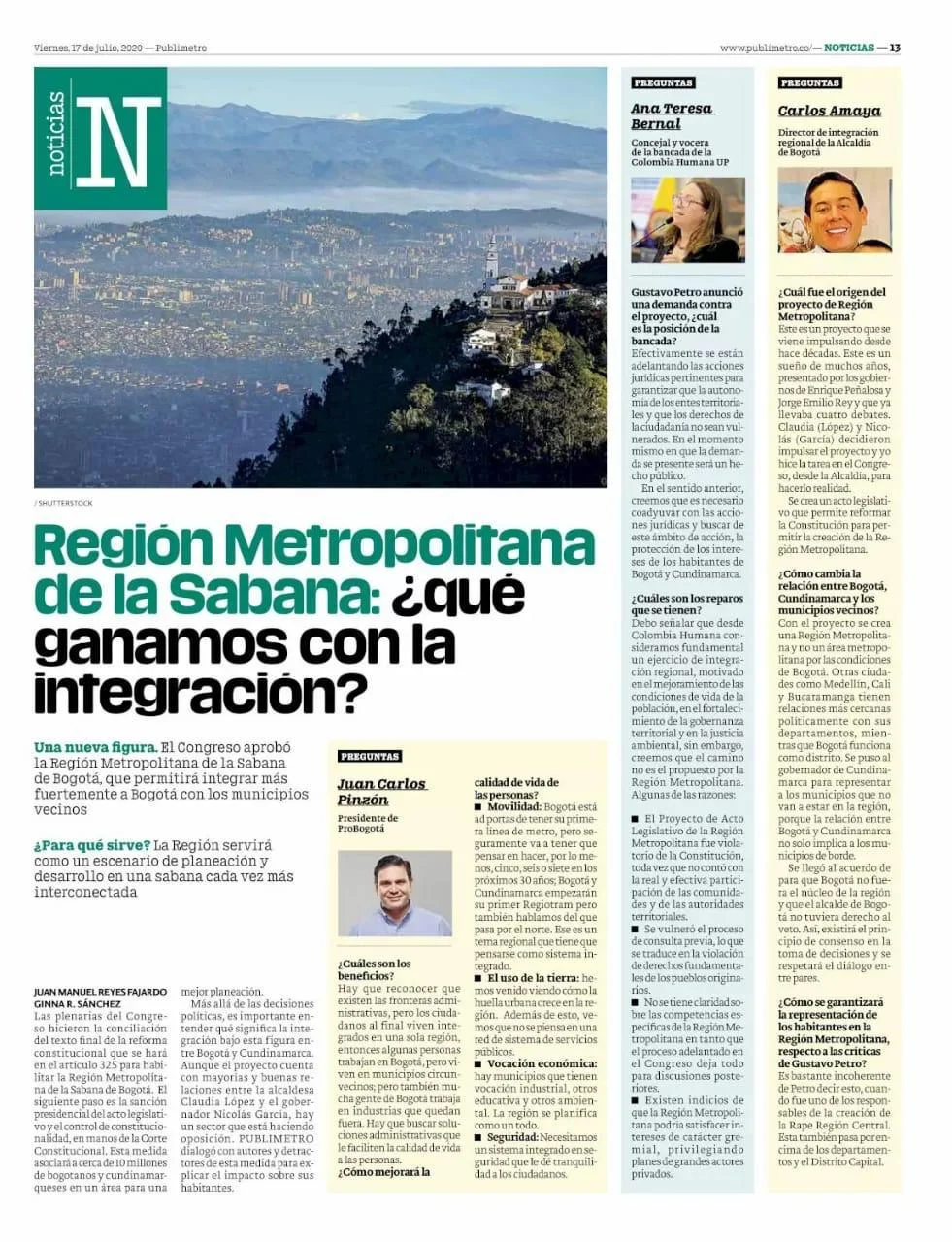 El Congreso aprobó la Región Metropolitana de la Sabana de Bogotá, que permitirá integrar más a Bogotá con los municipios vecinos.