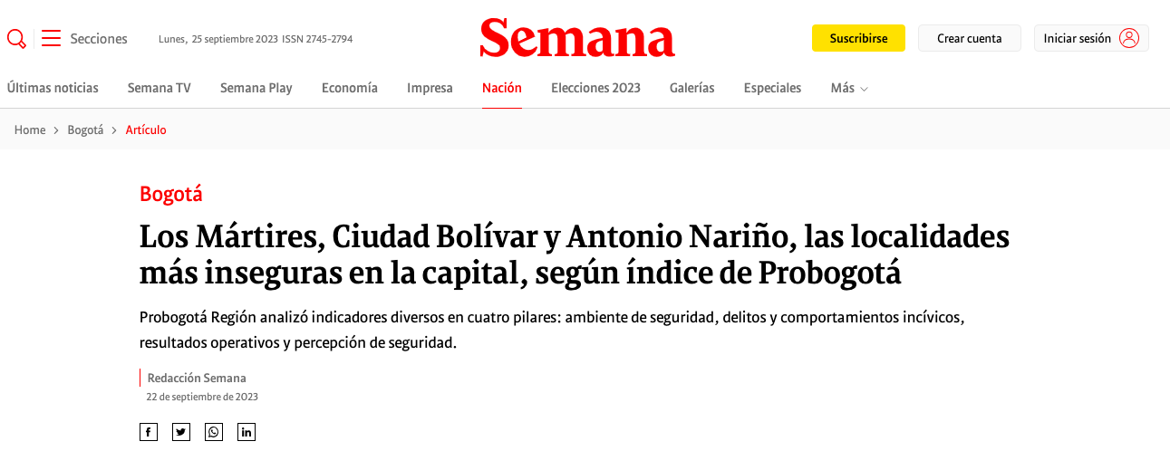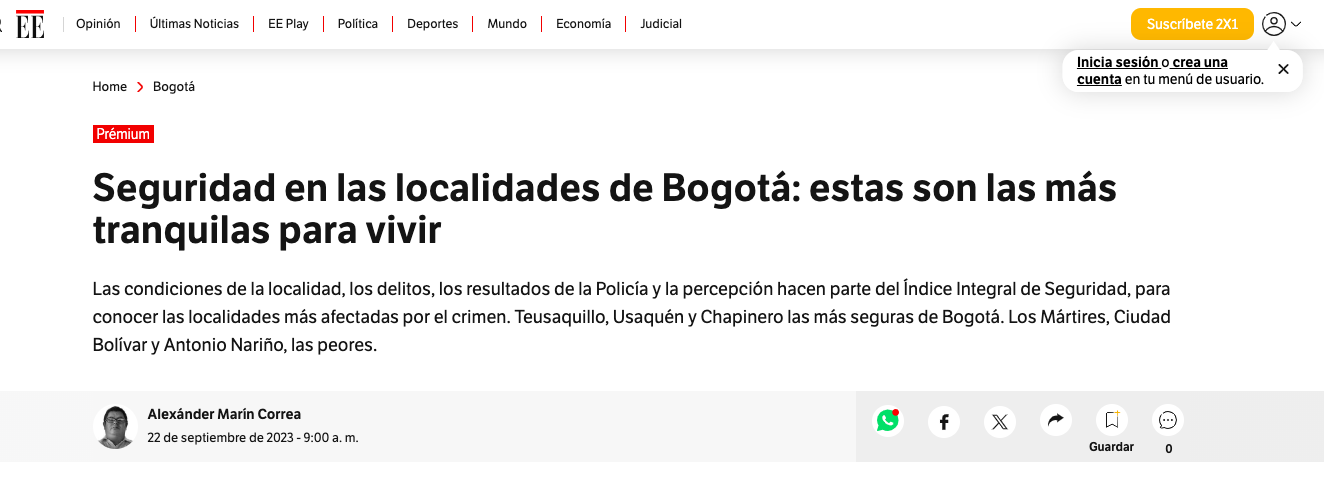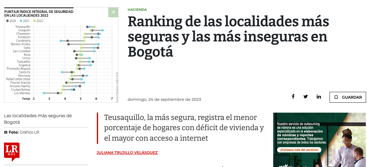 Ranking de las localidades más seguras y las más inseguras en Bogotá.