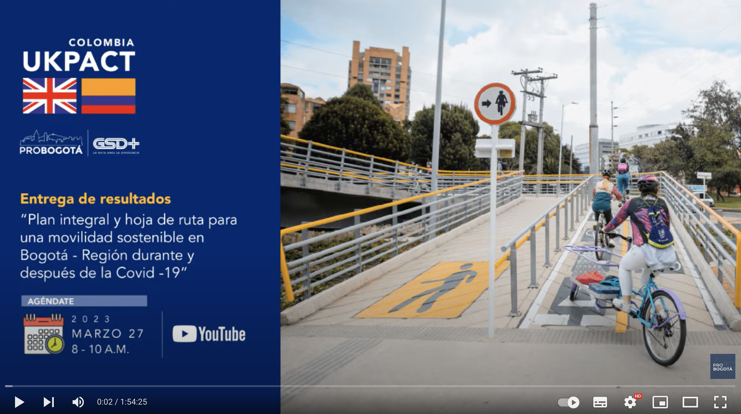 Para Probogotá Región y GSD Plus es un honor compartir con ustedes el cierre del segundo año del contrato de subvención con el Reino Unido, que a través del programa UK Partnering for Accelerated Climate Transition (UK PACT) financió el proyecto “Plan integral y hoja de ruta para una movilidad sostenible en Bogotá-Región durante y después de la Covid -19” ejecutado desde el 2021 con el apoyo permanente de la Alcaldía de Bogotá, en cabeza del equipo de la Secretaría Distrital de Movilidad.